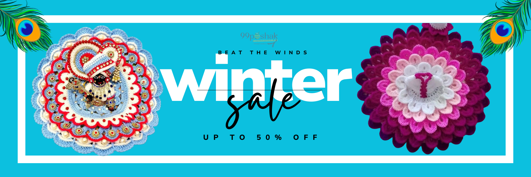 Stay cozy this season with 99Poshak Winter Sale 2025 – shop the latest woolen dresses, pagdis, and warm accessories for your Laddu Gopal at unbeatable prices.
