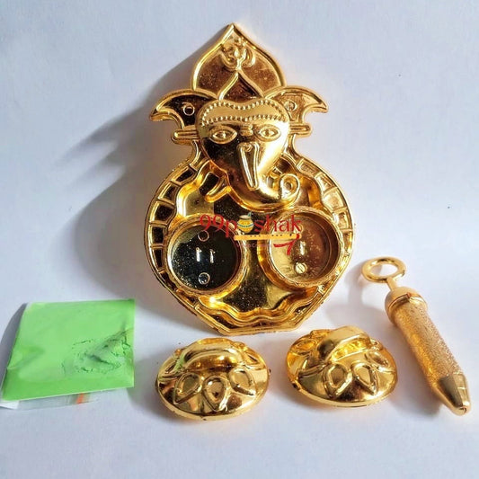Holi Golden Plate Lord Ganesha with Pichkari Gulal