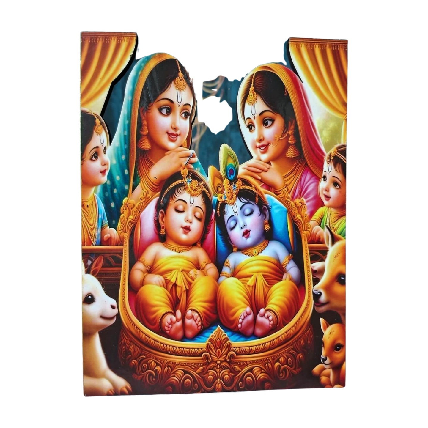 Enhance your Laddu Gopal Ji's celebration setup with our beautifully crafted wooden cutouts, perfect for Janmashtami decoration. Made from premium-quality wood and designed with intricate details, these cutouts add a spiritual and festive charm to your home temple or puja space. Ideal for backgrounds, table decor, or Jhula decoration, each piece reflects devotion and artistry — making your Kanha Ji’s birthday truly special.