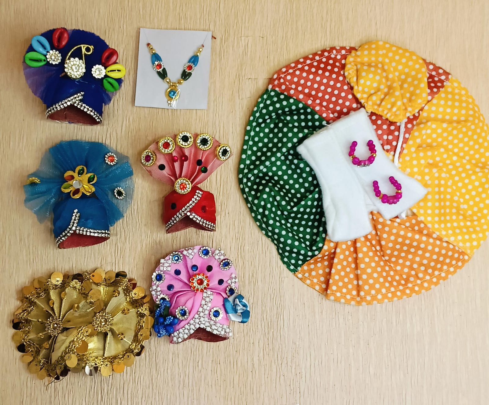 Combo of Pagri Mala Kangan Velvet Dress for Laddu Gopal (8 items)
