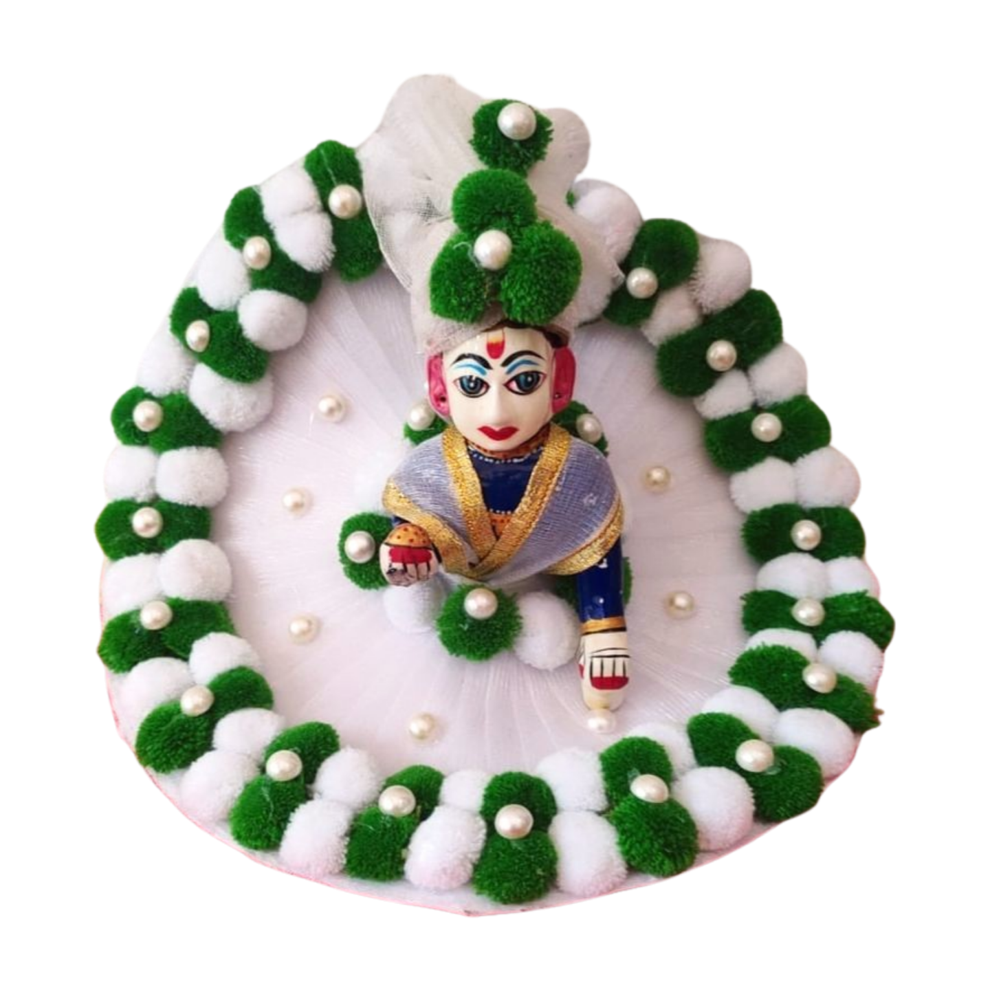 Heavy dress for Laddu Gopal Ji, made with premium fabric and detailed embellishments. Perfect for festivals, Janmashtmi, pooja, and special occasions, this dress adds a divine charm and elegance to your beloved deity. Designed to fit comfortably while offering a grand traditional look.