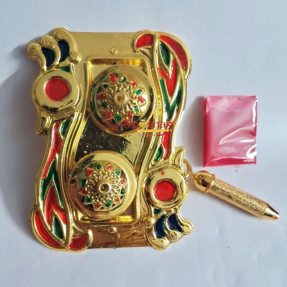 Holi Golden & Mixed Colour Rectangle Plate with Pichkari Gulal