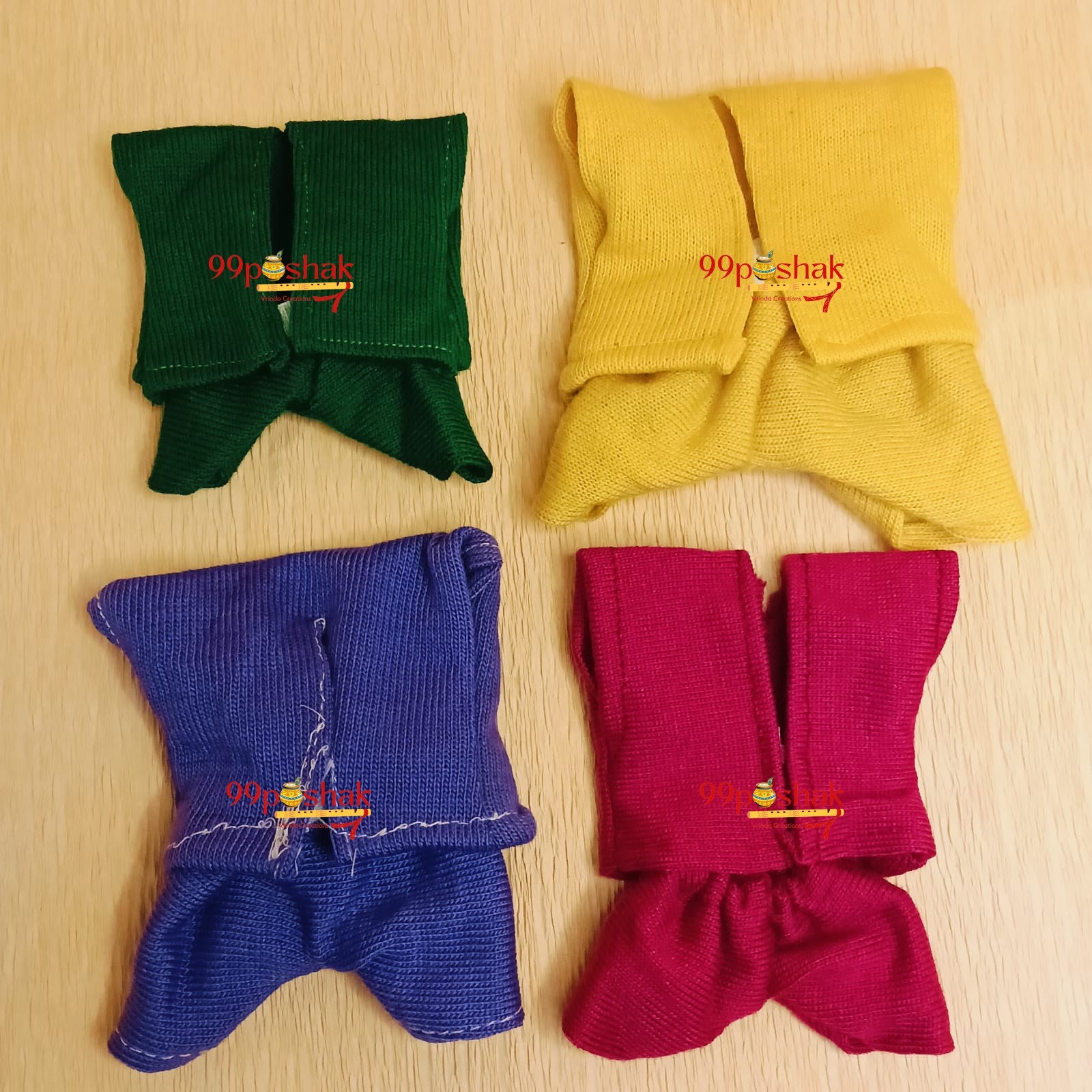 Prepare your deity for the cold with our Size 5 Laddu Gopal Woolen Color Inner Pack of 4, a must-have Laddu Gopal winter wear. These vibrant and soft Laddu Gopal sweaters provide excellent warmth during winters. Designed as perfect Laddu Gopal color inners, they are easy to layer under outfits, ensuring your deity stays warm and stylish. Enhance your Laddu Gopal's winter wardrobe with this set, ideal for daily rituals and festive occasions.