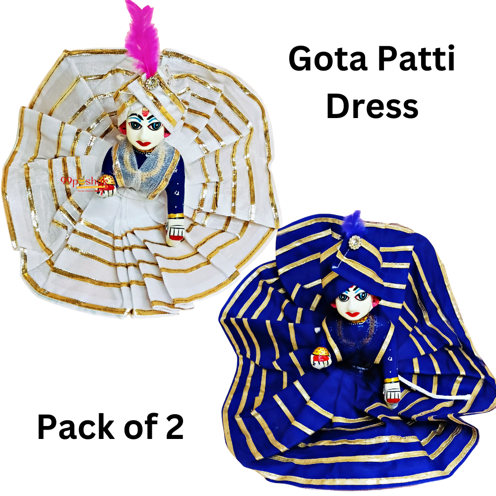 Laddu Gopal Gota Patti White & Blue Dress - Pack of 2