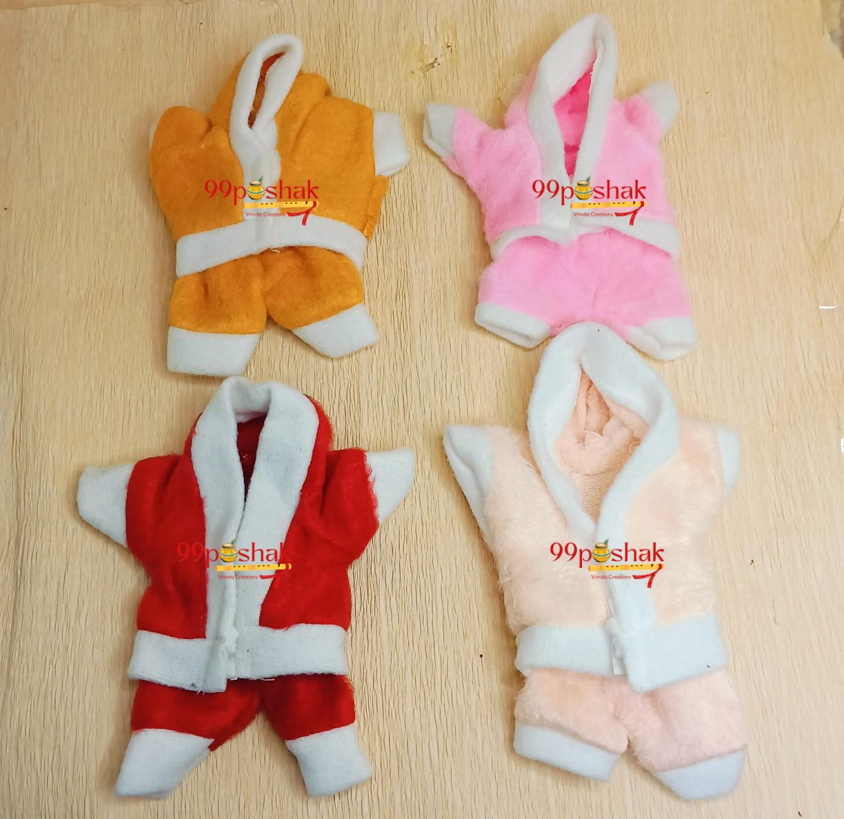 Keep your deity warm and fashionable with the Size 3 Laddu Gopal Hoodie Suit Winter Dress Pack of 4. Featuring a cozy hoodie design, these suits are perfect as Laddu Gopal winter wear. Made for warmth and style, each suit comes in random colors, adding variety to your deity's wardrobe. Ideal as a functional and stylish Laddu Gopal winter dress, it Guarantees divine charm and protection during cold weather.