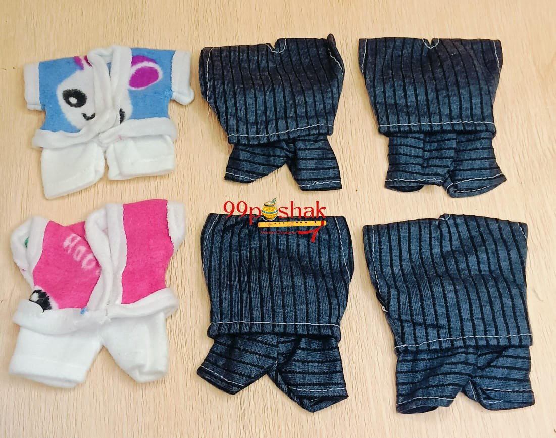 Keep your deity cozy and stylish with the Size 2 Laddu Gopal Innersuit and Velvet Night Suit Combo. This set includes 4Pc soft Laddu Gopal innersuits and 2Pc sophisticated velvet night suits, all in random colors, making it perfect for winter. Designed as essential Laddu Gopal winter wear, this combo Guarantees warmth and versatility for both daily rituals and nighttime protection. A complete wardrobe addition for your Laddu Gopal's ease and divine appearance.