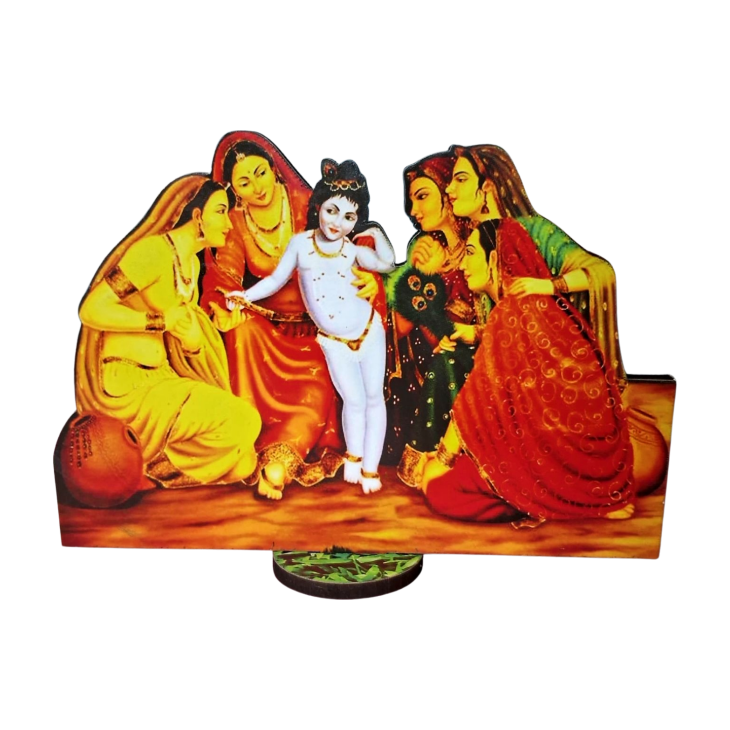 Laddu Gopal Ji Janmashtami Wooden Decoration Cutouts Kanha with gopi (6Inch)