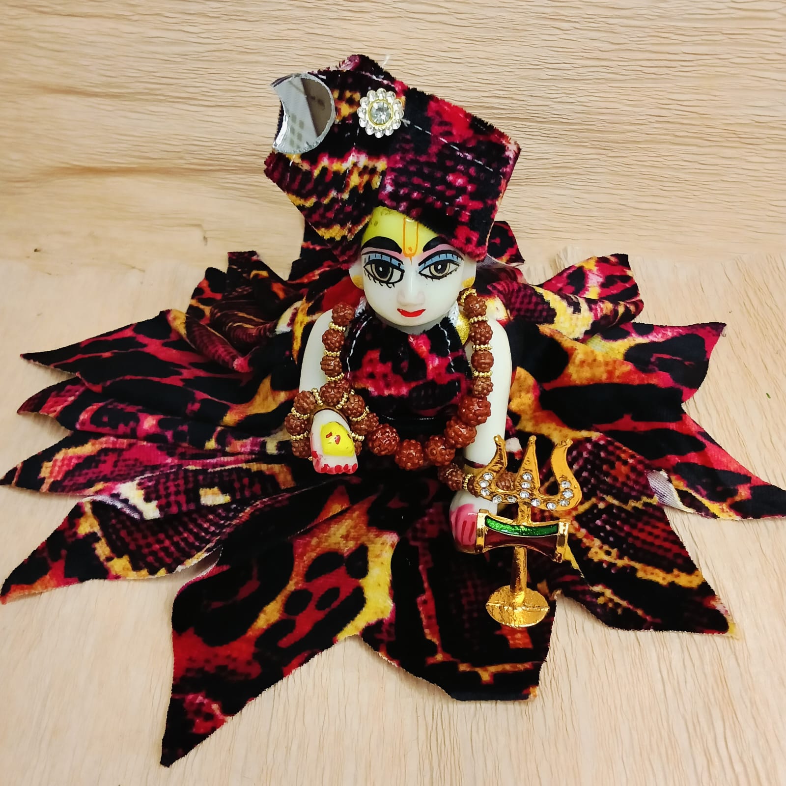 Dress your deity for Mahashivratri with the Laddu Gopal Shivratri Dress with Trishul, Mala, and Kangan. This beautifully designed outfit pays homage to Lord Shiva, making it perfect for rituals and celebrations. The set includes symbolic accessories like a trishul, a sacred mala, and kangan, enhancing your Laddu Gopal's divine aura for the auspicious occasion.