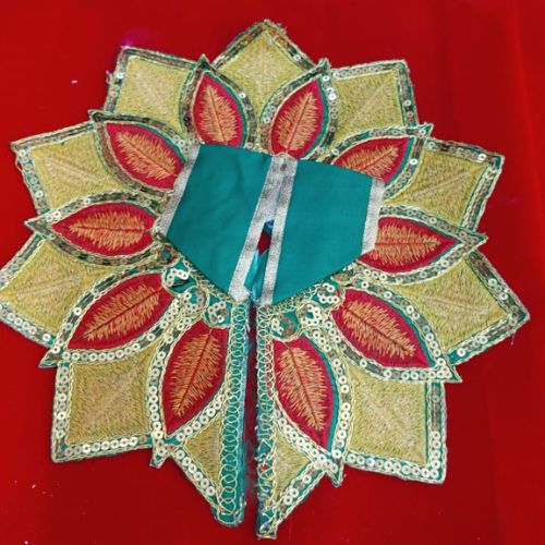 Elevate your Laddu Gopal’s appearance with this stunning Lotus Design Poshak, inspired by the divine symbolism of the lotus flower. Crafted with rich green and red fabric, intricate golden zari embroidery, and glimmering sequin detailing, this uniquely shaped poshak radiates purity and devotion. The layered lotus petal pattern adds a majestic and spiritual charm, perfect for festive occasions and temple decor.