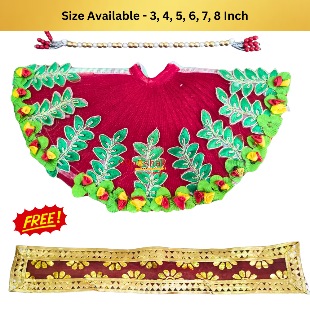 99POSHAK presents the Mata Rani Red Heavy Net Base Dress with Flower Leaf Design, Pearl Patka & Free Chunri, a beautifully handcrafted ensemble designed to enhance the divine presence of Devi Maa, Durga Maa, and Vaishno Mata. Made from premium-quality heavy net fabric, this dress features an intricate flower and leaf pattern with delicate pearl embellishments, adding a royal and graceful touch. The elegant Red color symbolizes love, devotion, and spirituality, making it ideal for Navratri, Ramnavmi, Diwali, and daily worship. This set includes a matching pearl-adorned patka and a free Chunri, completing the traditional look. Expertly handcrafted by skilled artisans, this outfit ensures durability, a perfect fit, and superior craftsmanship. Order now and adorn Mata Rani with 99POSHAK’s exquisite festive collection!