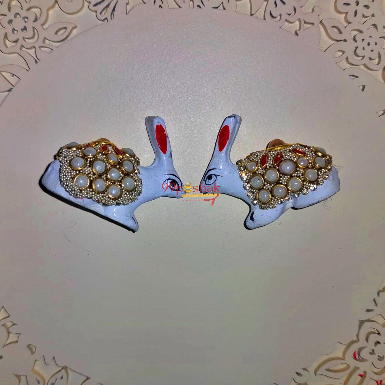 Metalic Meenakari Rabbit - Laddu Gopal Toy - Set of 2
