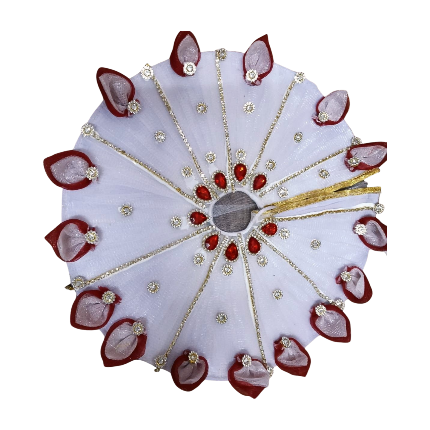 White and Red Heavy Dress with Pagdi for Laddu Gopal ji