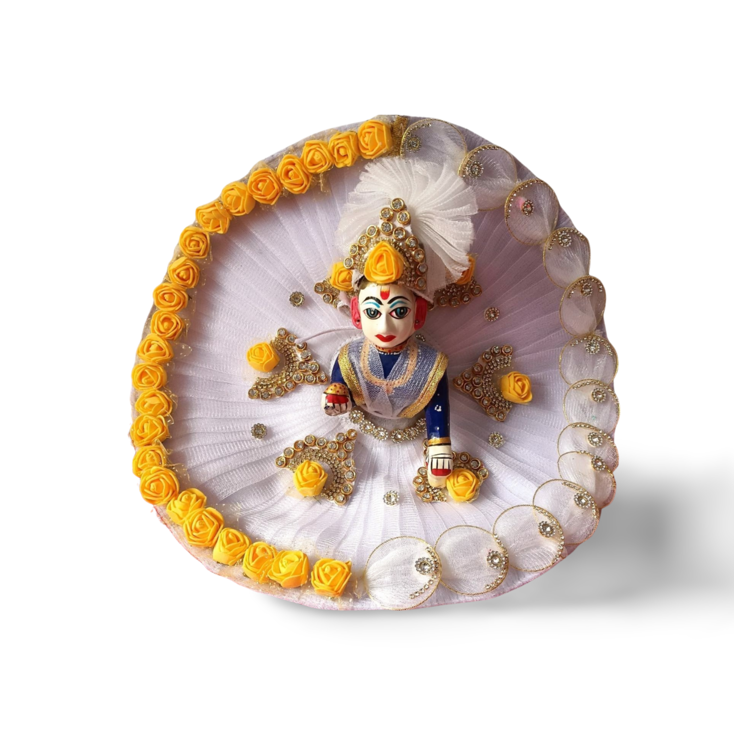 White and Yellow Heavy Dress with Pagdi for Laddu Gopal ji