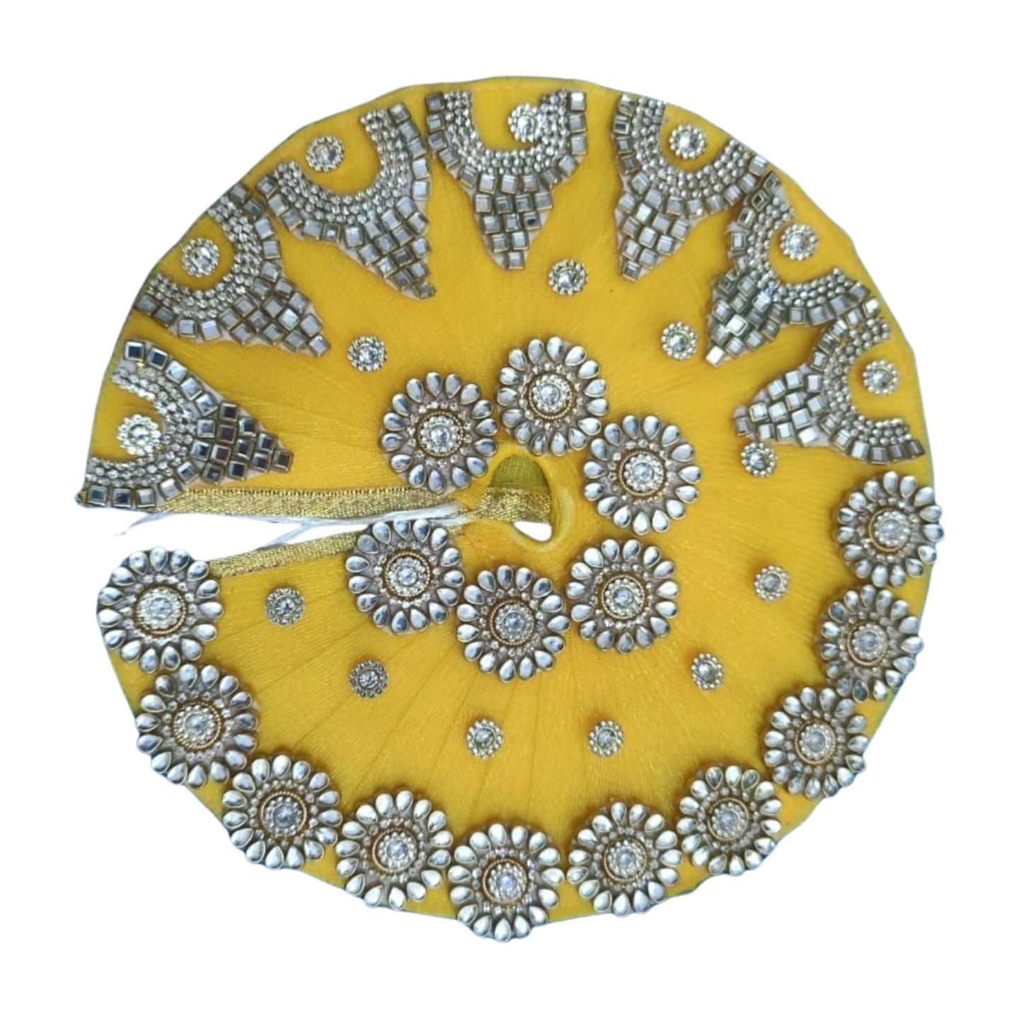 Heavy dress for Laddu Gopal Ji, made with premium fabric and detailed embellishments. Perfect for festivals, Janmashtmi, pooja, and special occasions, this dress adds a divine charm and elegance to your beloved deity. Designed to fit comfortably while offering a grand traditional look.